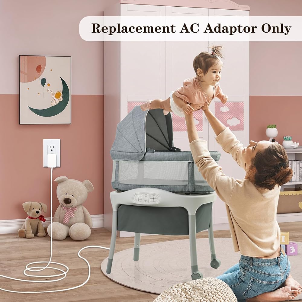 ✔ملاحظة: ❌ ❌ ❌ لا تناسب العلامات التجارية الأخرى [5، 6، 8، 12 فولت] أرجوحة أطفال - فقط لسرير الأطفال Graco Sense2Snooze، Sense to Snooze، Move 'n Soothe، Move n Soothe. (يناسب فقط سرير الأطفال DC 9V مع محول الشاحن).