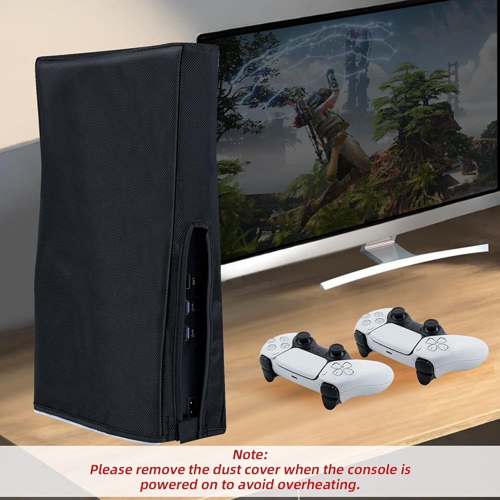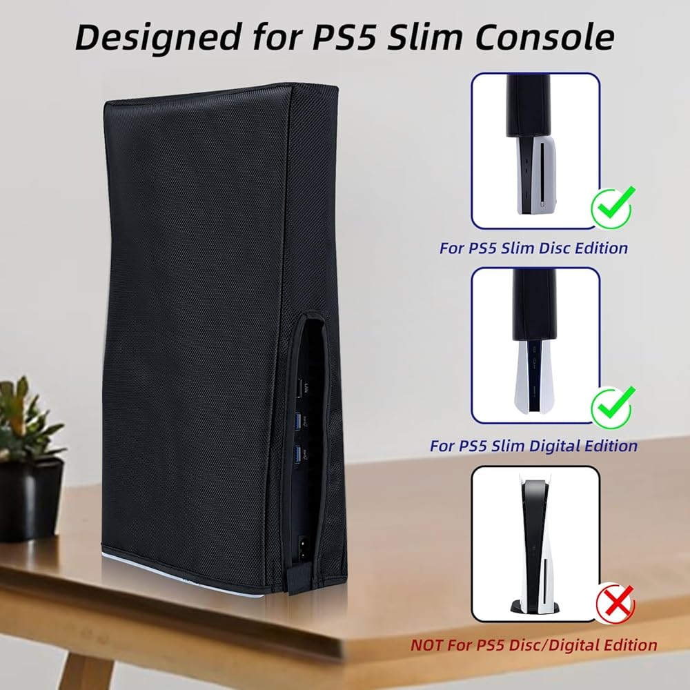 Tailor-Made for PS5 Slim: This dust cover is exclusively designed for the PS5 Slim Digital Edition and Disc consoles in horizontal orientation, ensuring a flawless fit. Its specialized design provides maximum protection, preserving the pristine condition of your console. Please note, this cover is not compatible with the original PS5 model.