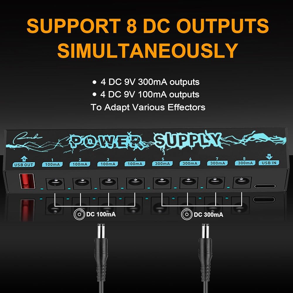 🎸 Enhanced Adaptability: The pedal board power supply is a versatile solution with a Type C power input and 5V USB output. Power your effect pedals and charge devices efficiently, making it ideal for both music and personal needs.