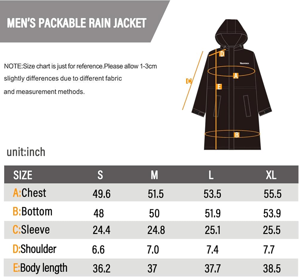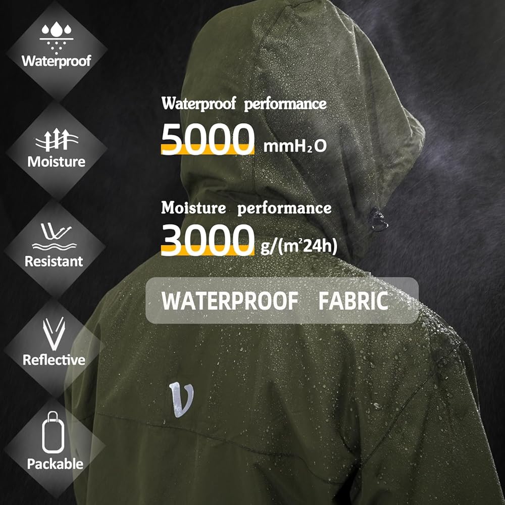 VIKAMAKA Men's Rain Jacket Waterproof Windbreaker Breathable Raincoat with Hood for Running Cycling Golf Hiking Lightweight Reflective Packable