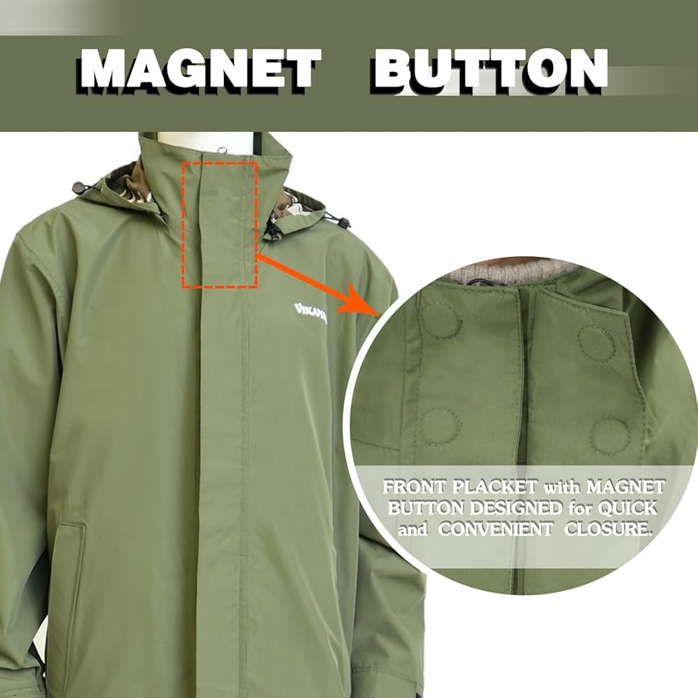 UNIPUE MULTIPLE CLOSURES: The raincoat uses the magnet button and Velcro to close up quickly, matched the double slider zipper to take on and off easily, protecting your body to prevent the cold wind from entering.