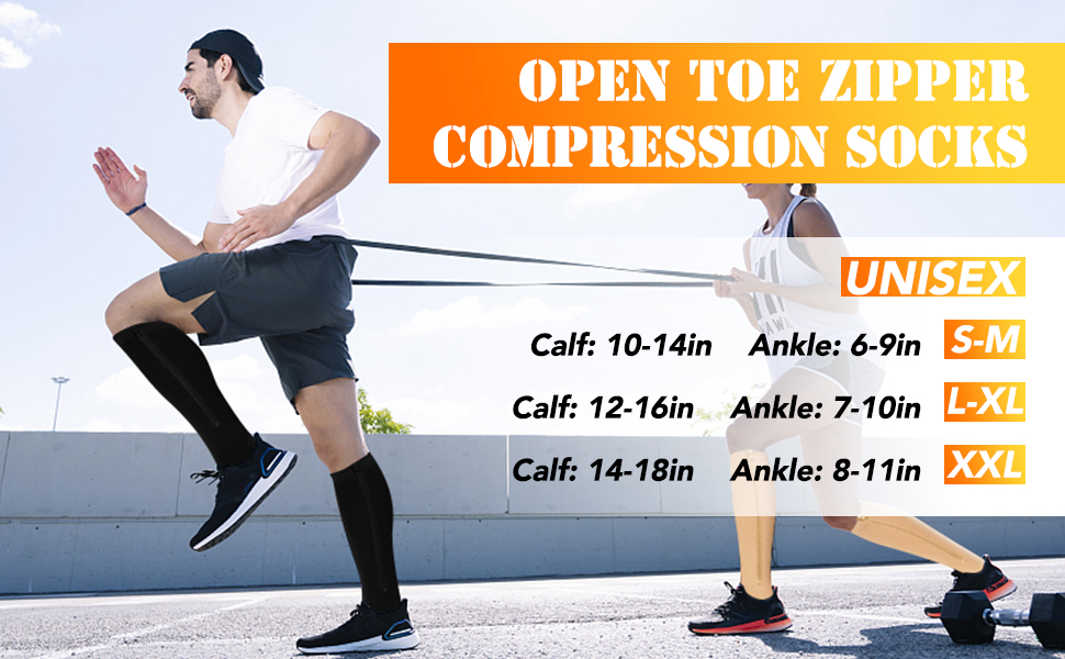 【JUST THE RIGHT SUPPORT】We designed our open toe zipper compression socks (15-20mmHg) to offer just the right balance between warmth, compression, and comfort. Our products stimulate oxygen delivery to the muscles and augment airflow. This aids with joint and muscle recovery, and supports rejuvenating relief from pain and discomfort.