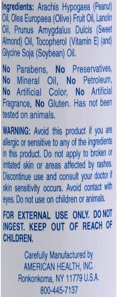 Home Health Almond Glow Skin Lotion Unscented. Description: Almond Glow Unscented Skin Lotion with Peanut Oil, Olive Oil, Lanolin Oil and Vitamin E. Natural, all-purpose lotion. Moisturizes and revitalizes the skin. Excellent for massage. Paraben-Free. The rich, natural oils that make Almond Glow a delightful moisturizing lotion for all-over skin care also make it an excellent massage oil. Our exclusive formula includes the following natural ingredients: Peanut Oil: an excellent emollient and lubricant. Olive Oil: to nourish the skin. Lanolin Oil: to moisturize and soften. Vitamin E: to maintain skin's vitality. Free Of Parabens, preservatives, artificial colors, artificial fragrances, mineral oil, petroleum and animal testing. Disclaimer: These statements have not been evaluated by the FDA. These products are not intended to diagnose, treat, cure, or prevent any disease.