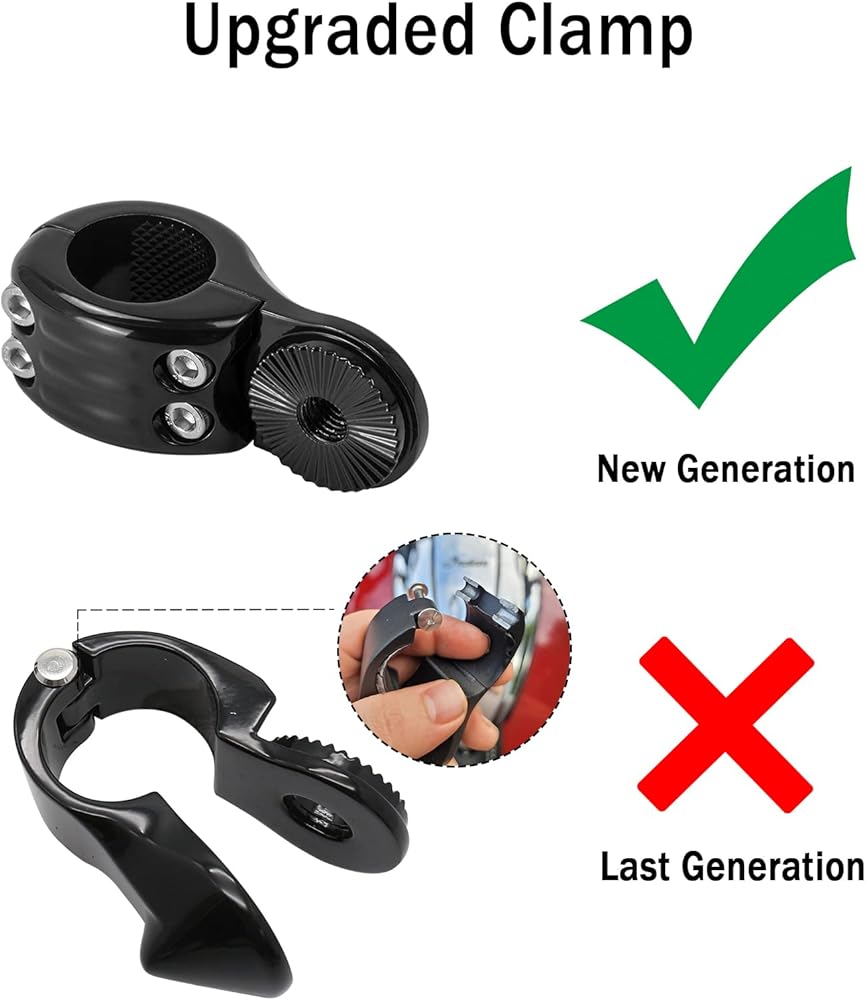 [Upgraded Clamp]:①New generation stable design,and grip firm the engine guard ②The clamp is 360 degrees of adjustable,you can choose comfortable angle and position for your foot