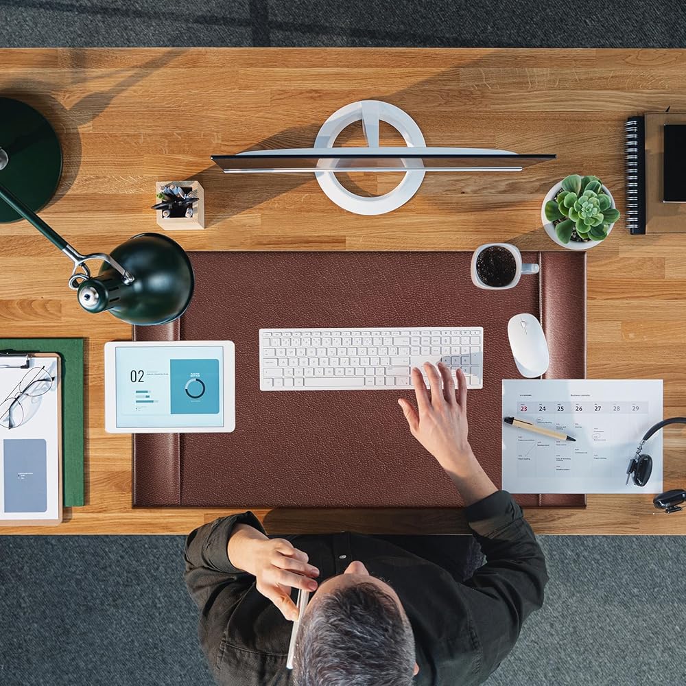 The side rails of our leather desk mats are not only stylish additions but also functional features that allow you to clip blotter paper, file paper, and essential documents. This contributes to an organized and decluttered workspace conducive to productivity.