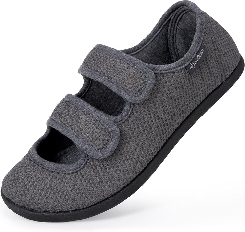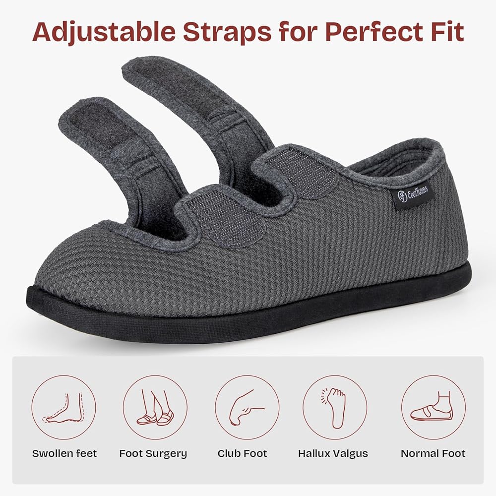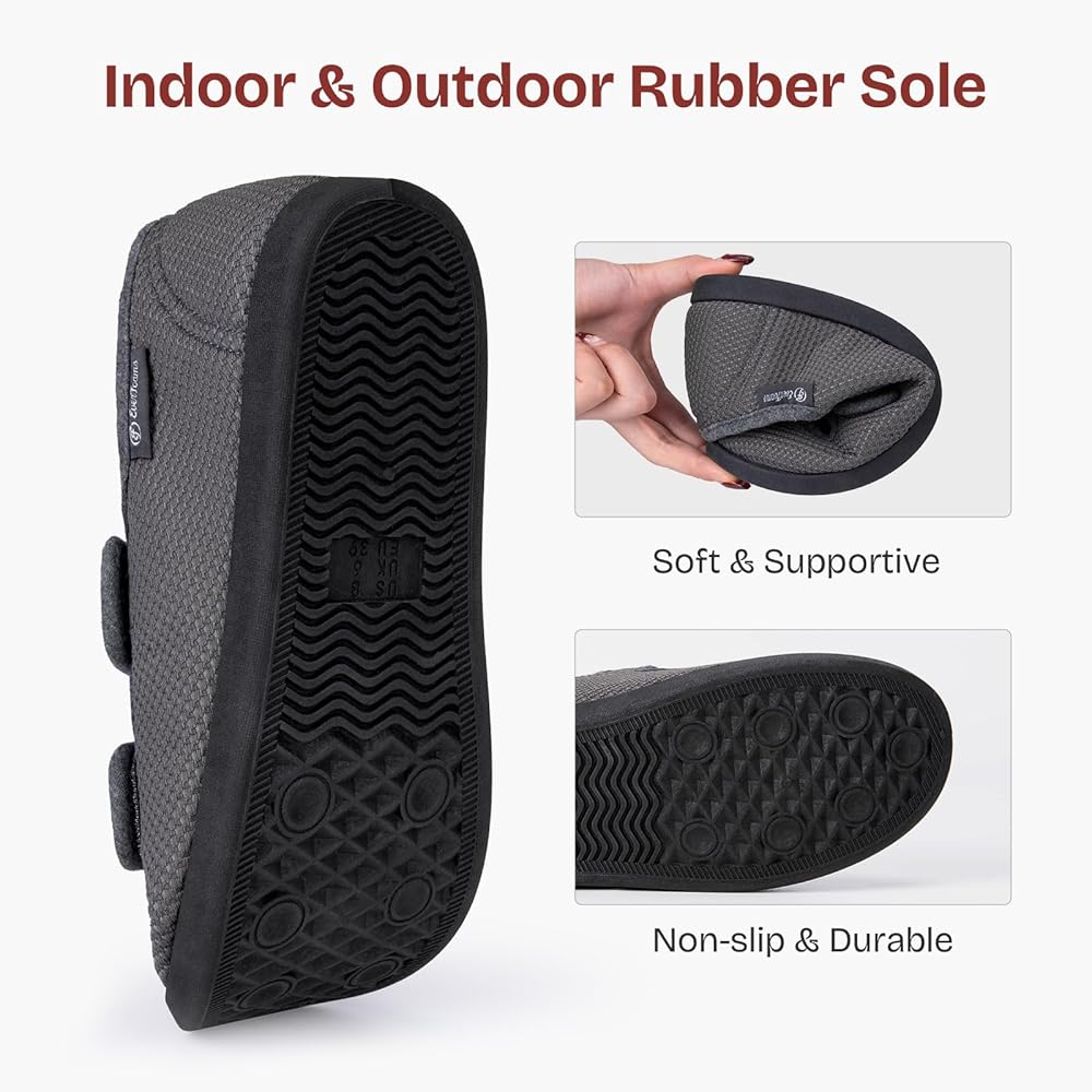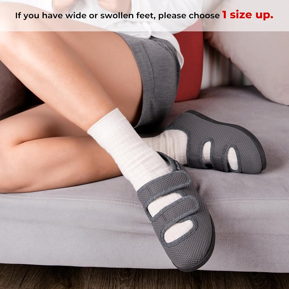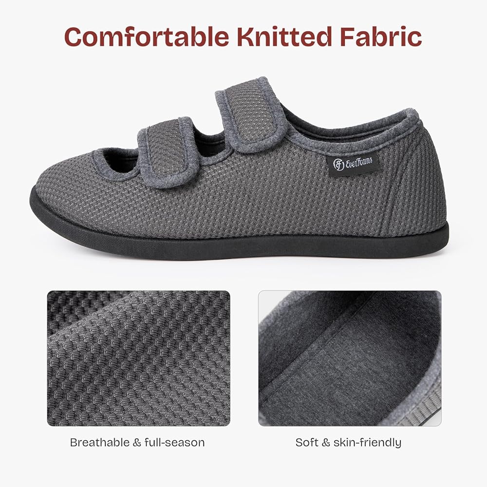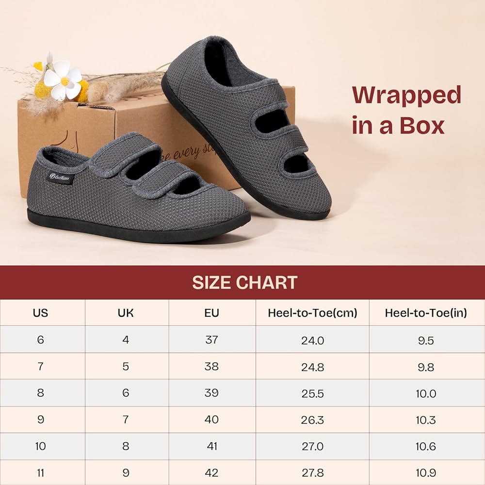 PREMIUM MATERIALS: These women's slippers with adjustable closures embody leisure style and ultimate comfort for both inside the house or when traveling out. Featuring soft and breathable knit fabrics which are suitable for all seasons, these comfortable edema shoes for swollen feet keep you really relaxed. They are easy to maintain, hand and machine washable
