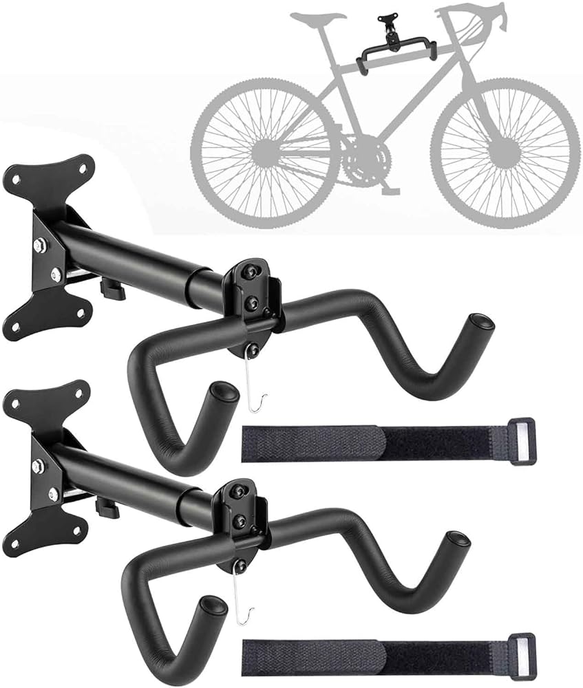 Bike Hanger Wall Mount - 2 Pack Adjustable Bike Garage Hanger Foldable Bicycle Rack Bicycle Storage Horizontal Indoor Outside Bike Hook for Garage for Road Mountain Hybrid Bikes