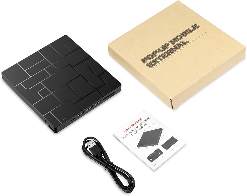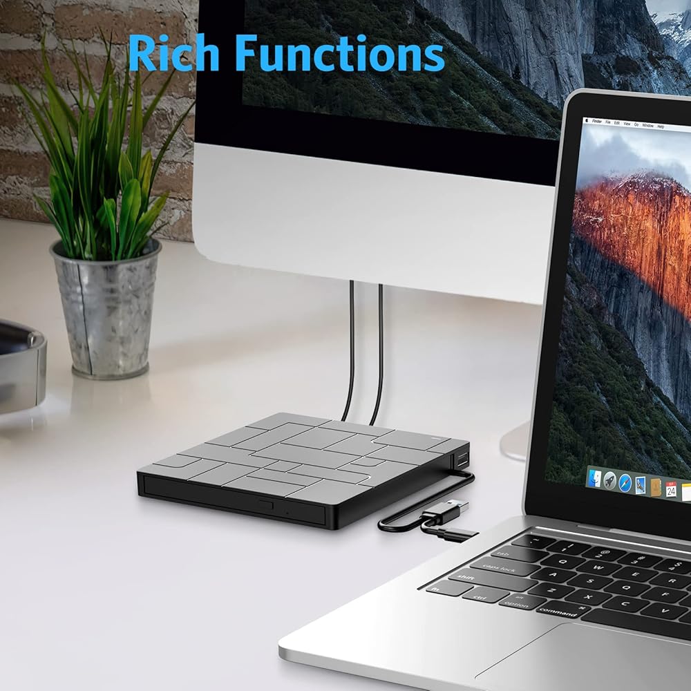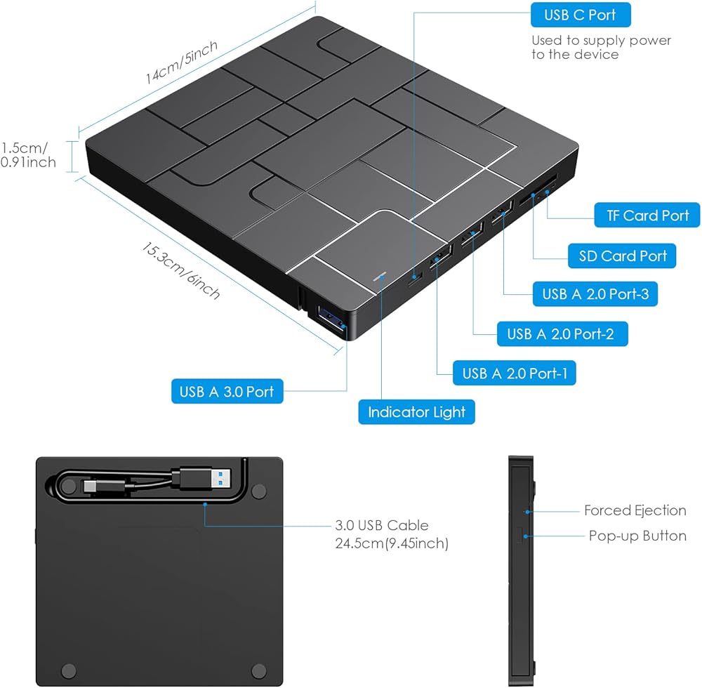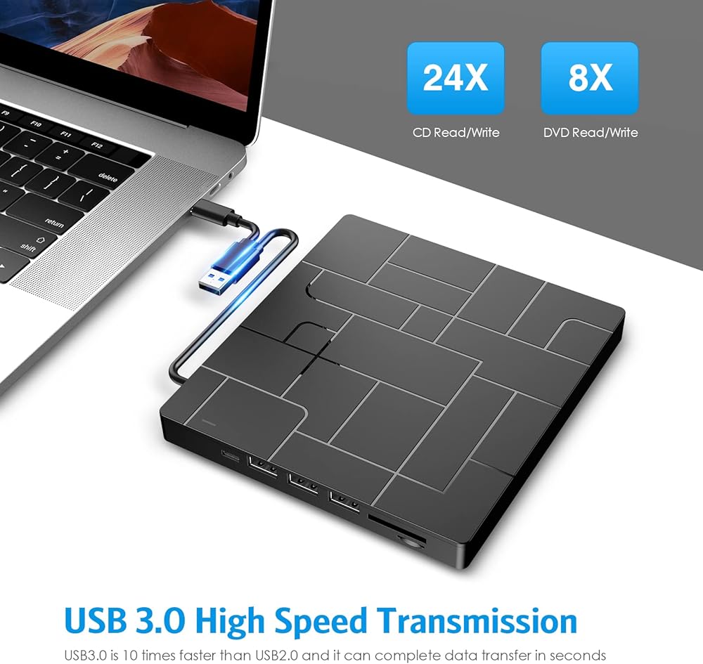 Criacr External DVD Drive, USB 3.0 CD DVD Burner for Laptop with 4 USB Ports & 2 SD Card Slots & 1 Type-C Ports, CD/DVD ROM +/-RW Optical Disk Drive for Mac, PC Windows 11/10/8/7 Linux OS