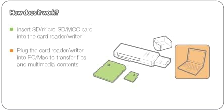 Secure Digital cards are ubiquitous in consumer electronic devices and have become the dominant means of storing several gigabytes of data in a small form factor. This new device is extremely compact but big on compatibility within the SD memory card family. The unit supports the very latest in memory card format, SDXC (Secure Digital Extended Capacity). The SD/MicroSD/MMC Card Reader/Writer is a solution for hi-speed, bi-directional image and data transfer. Images and data can be transferred quickly from Secure Digital Card (SD), MultiMedia Card (MMC), or MicroSD memory cards to PCs or Macs. This is particularly useful in many applications, including digital cameras, video cameras, mobile phones, MP3, and other4 mobile devices. This item is an ideal way to bridge the gap between your desktop computer and other CE products. Just plug the product into your computer's USB 1.1 or 2.0 port and you are ready to go!