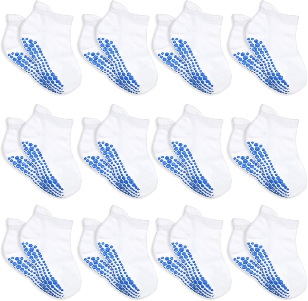 Our baby non-skid ankle socks are covered with substantial nonskid strong grips on the bottom. The strong silicone grips can provide enough friction, so baby will not slip on hard floor or other smooth surface when walking, crawling or playing.