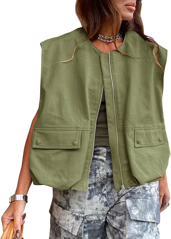 Features: This women's casual cargo vest features full zip up, sleeveless, ruched hem, two bid front pockets, casual loose fit, trendy outdoor vest for women. A must-have addition to your wardrobe.