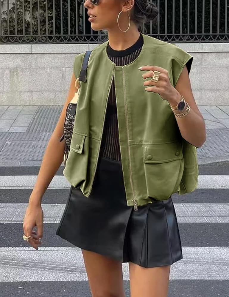Design: Zip up sleeveless jacket is made of lightweight fabric, offers a comfortable and breathable wear experience. The loose fit allows for easy movement, while the pleated hem adds a feminine touch.