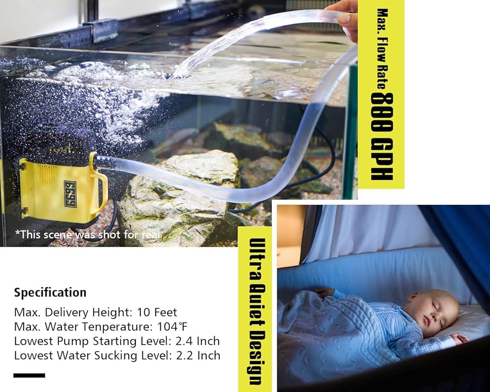【Wide Range of Applications】This submersible pump is ideal for small size aquariums, Fish tanks, Pond, desk fountains, pet cat dog water fountain, water gardens and hydroponic systems.
