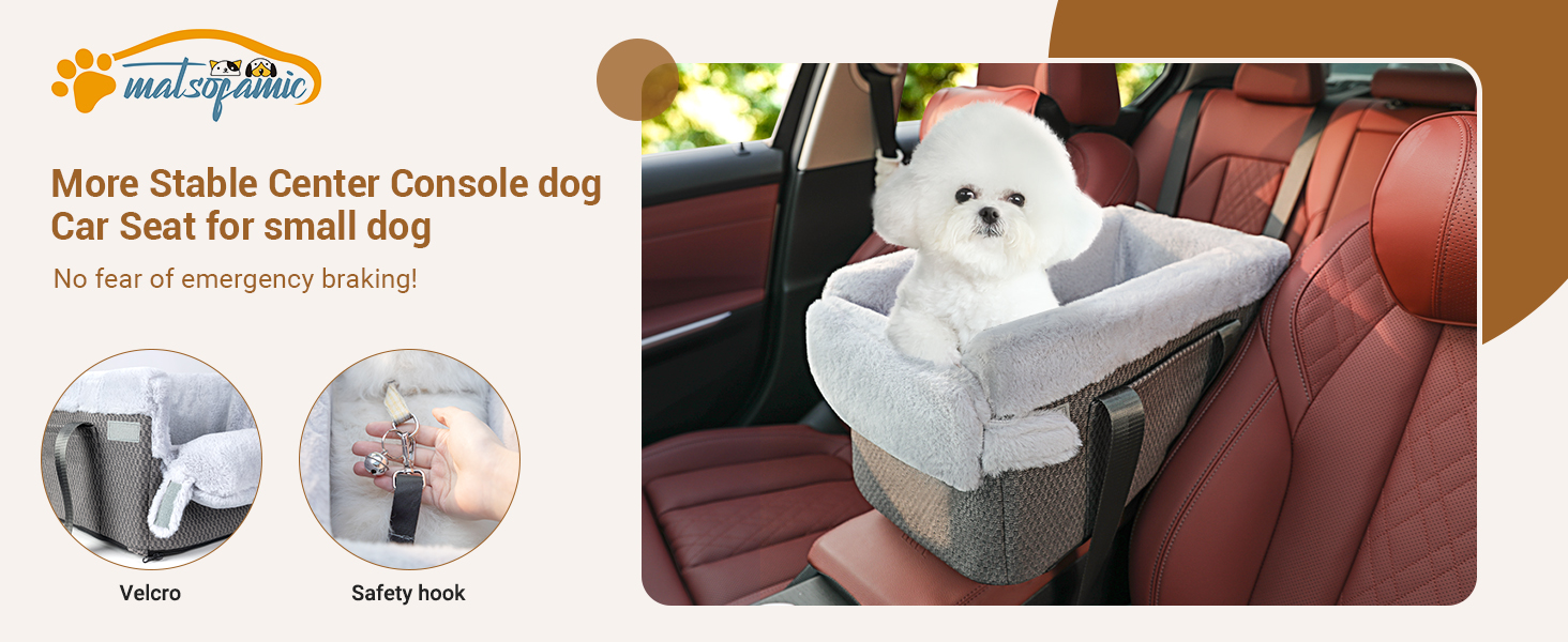 【Safe and stable】There is a about 21in long tether on the inside of this pet car seat, which you can connect to your dog's collar to prevent your dog from wandering around in the car. In addition,the bottom of the seat has anti-slip glue dots,both sides adds adjustable safety belts can fixed on the front seat slide rails to improved stability when braking.The fabric cover is removable,easy to clean,can also be machine washed.The sponge filled inside is also an extra soft protection for dogs.