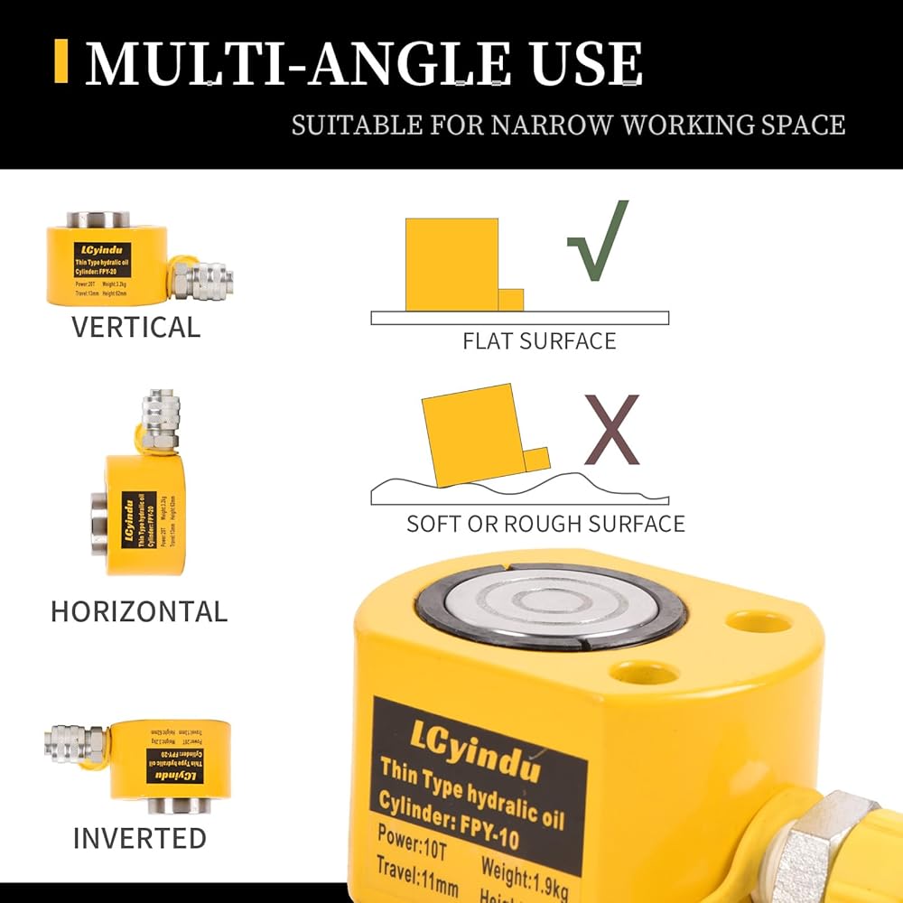 🔨【𝐖𝐈𝐃𝐄 𝐑𝐀𝐍𝐆𝐄 𝐎𝐅 𝐀𝐏𝐏𝐋𝐈𝐂𝐀𝐓𝐈𝐎𝐍𝐒】The porta power kit is used in power, chemical, steel, bridges, machinery and other industries. Suitable for vertical, horizontal and inverted directions, but cannot be tilted use. In order to operate correctly, all cylinders need to be connected to a solid flat lifting surface rather than soft or rough surface. Home car type is not recommended.