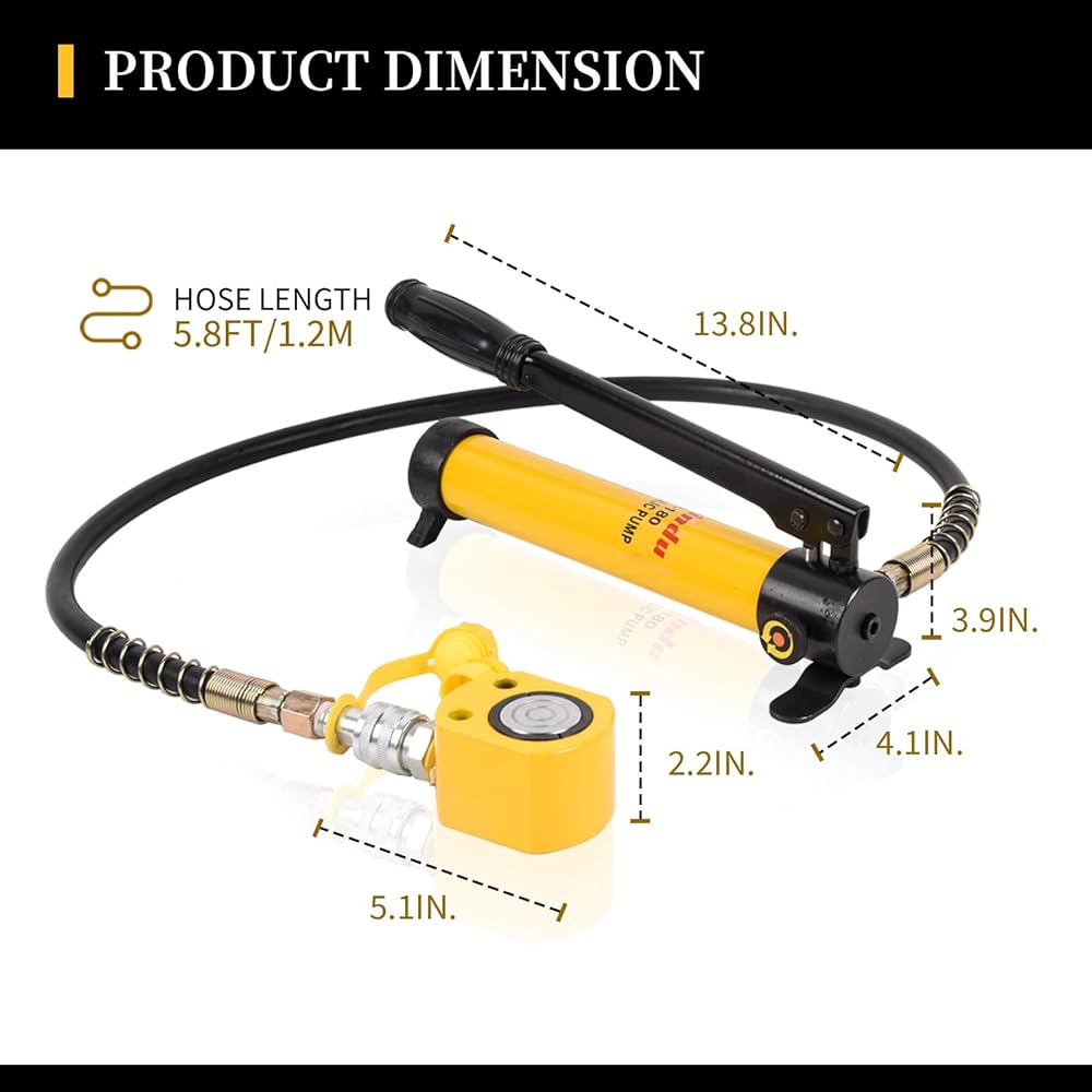 🔨【𝐔𝐒𝐄𝐃 𝐖𝐈𝐓𝐇 𝐏𝐔𝐌𝐏】The specification of hydraulic hand pump: Oil capacity: 400cc | High pressure output: 10000Psi | Hose Length: 47"/1.2m| Oil pipe coupling with: ZG3/8" female quick connector.
