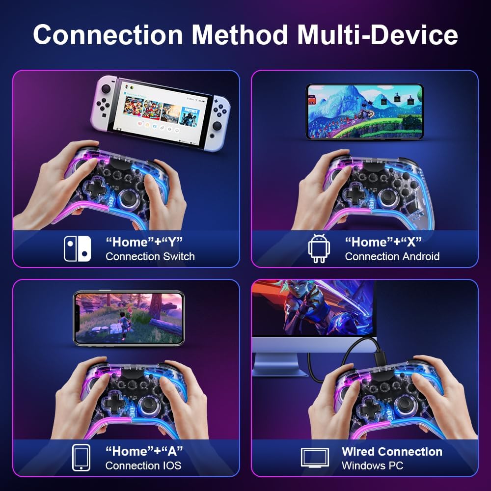 【STRONG COMPATIBILITY】The Switch Controller is fully compatible with Switch/Lite/OLED controllers. Additionally, the Switch remote supports iOS MFi games, Android HID model, and Windows 7/8/10. You can connect in stable Bluetooth or wired mode. By owning this Switch Pro controller, you will have access to a wider range of games. (Please note that only USB wired connection is supported for PC gaming)
