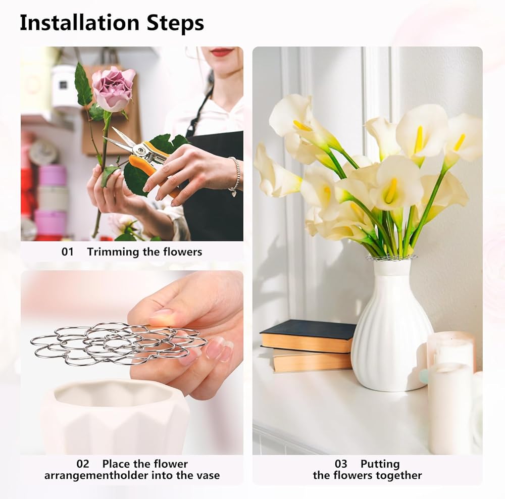 Durable Material: Made from high-quality stainless steel, their sturdy construction ensures they can withstand daily use without bending or breaking under pressure, guaranteeing a long service life. Additionally, cleaning these flower frog flower arrangements is a breeze as the material is easy to maintain and only requires simple cleaning after use.