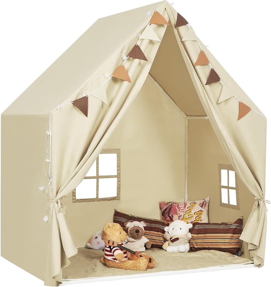 HUMANIZED DETAIL DESIGN - The breathable windows and the curtain make it feel like a little home while the sparkling LED star lights creating a dreamy space at night; neutral and elegant colors and textured fabrics add to the high-end aesthetic of this tent