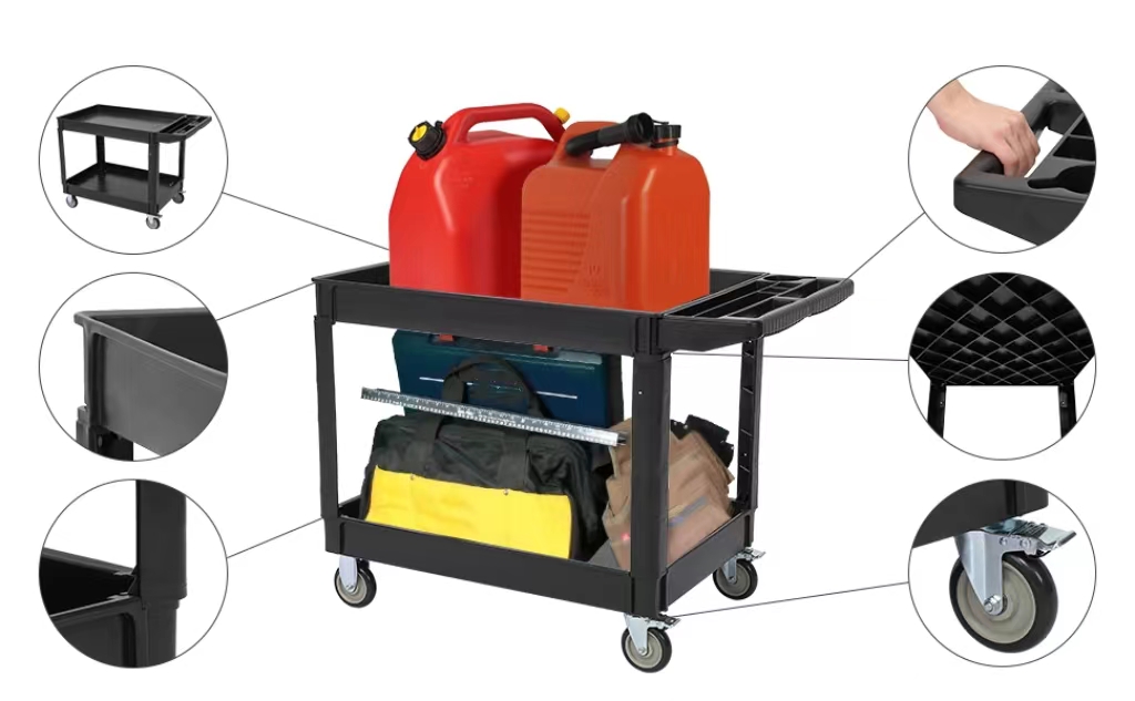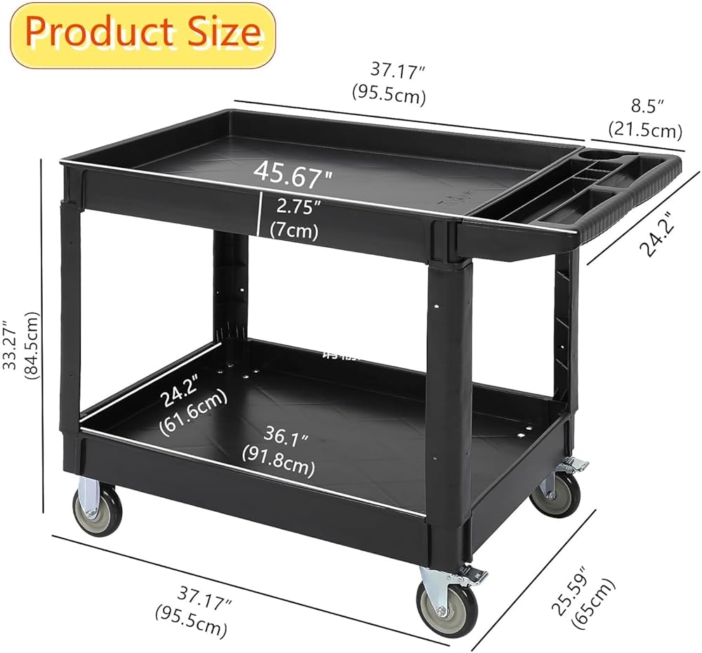 PERFECT FOR THE HEAVIEST LOADS - This service cart with wheels is perfect for transporting materials, supplies, and heavy loads in almost any environment. Structural foam provides more durability than other materials, offering 500 pounds of total storage weight capacity, with 250 pounds per shelf.