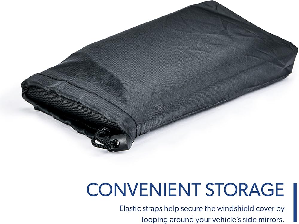 FrostGuard Glove | Car Windshield Cover for Ice and Snow - Standard Size, Fits Sedans and Compact Cars - Features Elastic Loops, Security Panels + Storage Pouch - Black, Measures 59 x 41 Inches