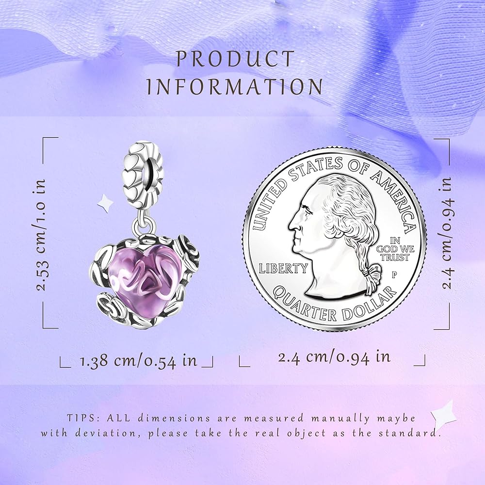 925 Sterling Silver Charms Beads for Bracelets & Necklaces, Pink Heart Charm Birthday Gifts Crystal Pendant Jewelry for Women Men Teens