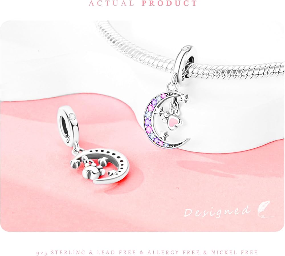 925 Sterling Silver Beads for Bracelets Necklaces, Pink Pet Kitten Cat Dog Puppy Claw Bone Infinite Love Heart Charms Hollow Carved Pendant, Cute Jewelry Birthday Gifts for Women Men Lovers