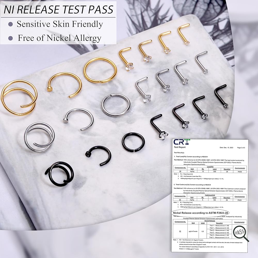 👧【PREMIUM QUALITY】These hypoallergenic nose ring pack are made of 316L stainless steel and sparkling AAAAA+ CZ, have professional quality inspection report. Lead free, nickel free and cadmium-free, resist rust and resist corrode; High polished smooth surface, do not scratch your skin.