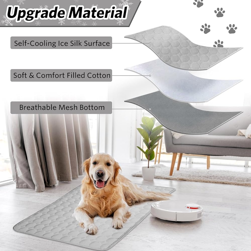 • سجادات سرير تبريد الكلاب للكلاب والقطط: يمكن أن يظل سطح الحرير الجليدي ذاتي التبريد باردًا عن طريق امتصاص حرارة جسم الحيوان الأليف، بدون تبريد أو كهرباء.