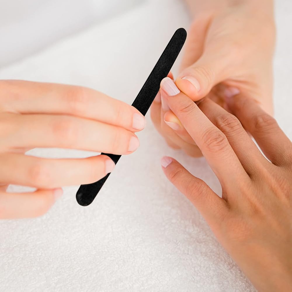 【Double sided emery boards】: File and rough up the hard fingernails and toe nails in 100 grit, and use 180 grit smoothing up your nail edge with refined shape