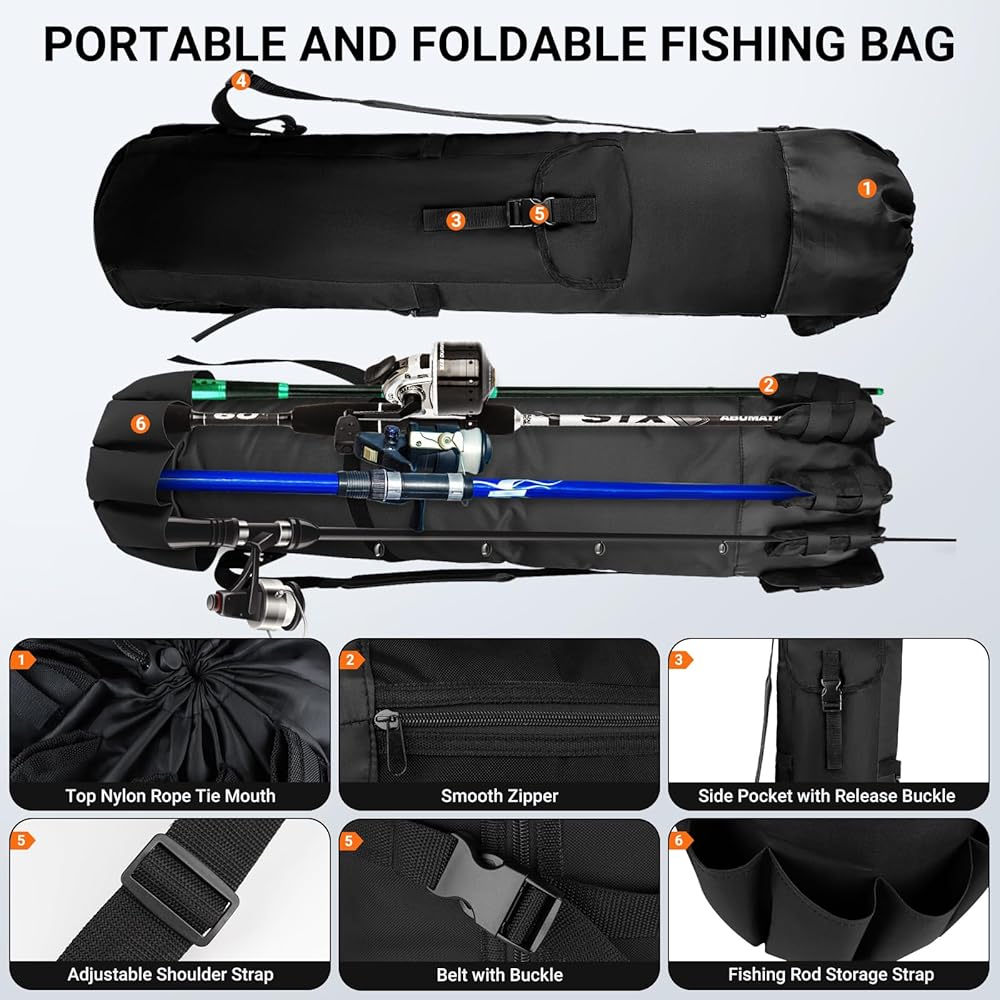 Spacious Large Capacity of Fishing Pole Case Bag for Men Fishing Gifts, With Carrying Adjustable Shoulder Strap, Easy to Carry, a perfect partner for your fishing. It's a perfect gifts for your family, father, boyfriend, daughter and friends.