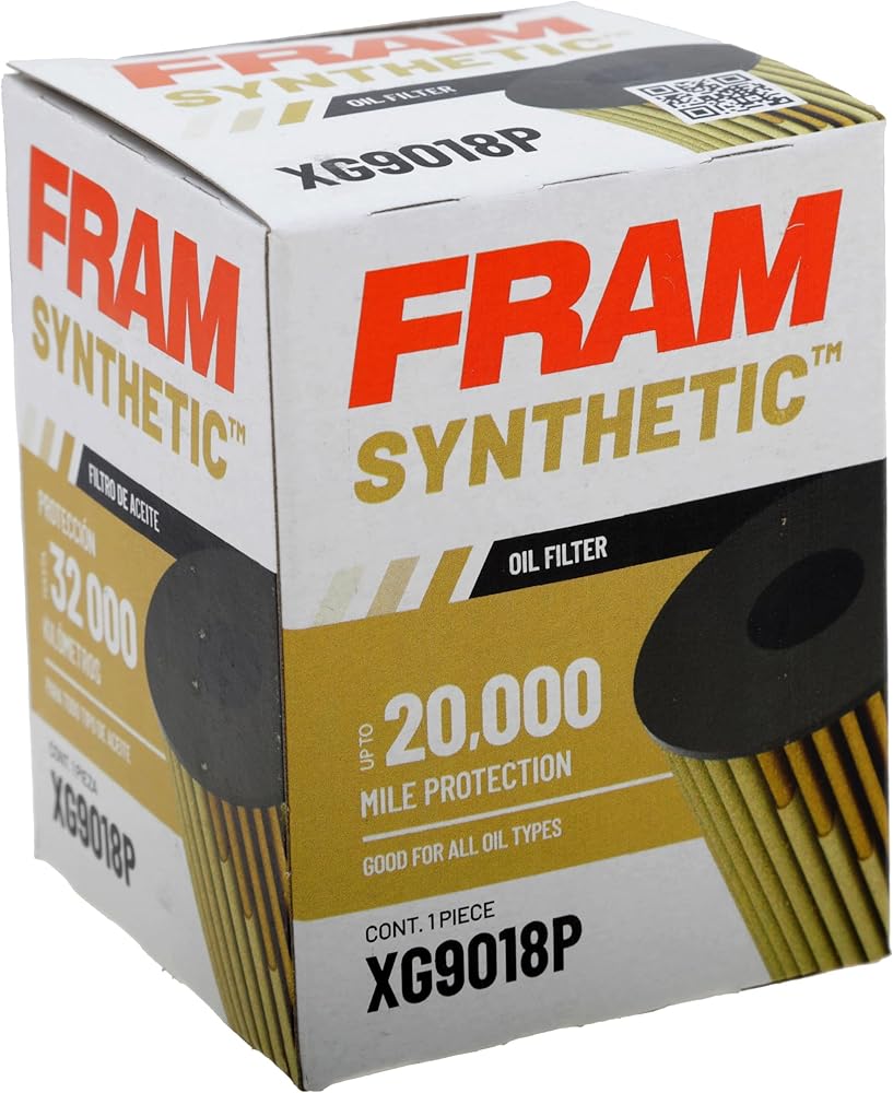 FRAM Ultra Synthetic Oil Filter XG9018 helps get top performance from newer engines and provide maximum protection for older ones. Engineered for all motor oil types, Ultra Synthetic Oil Filters have the ultimate dual-layer synthetic media which provides up to 20,000 miles of engine protection. This high capacity, high efficiency filter delivers peak performance. No matter what you drive, or what motor oil you use, FRAM has a filter for you.