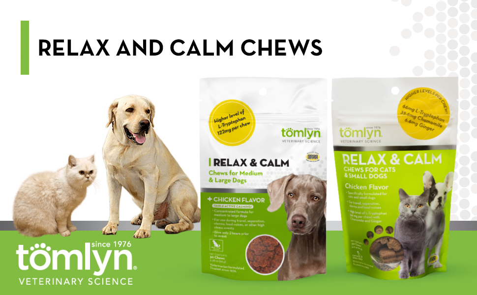 - Calming chews for pets offer calming support during stressful situations and new environments