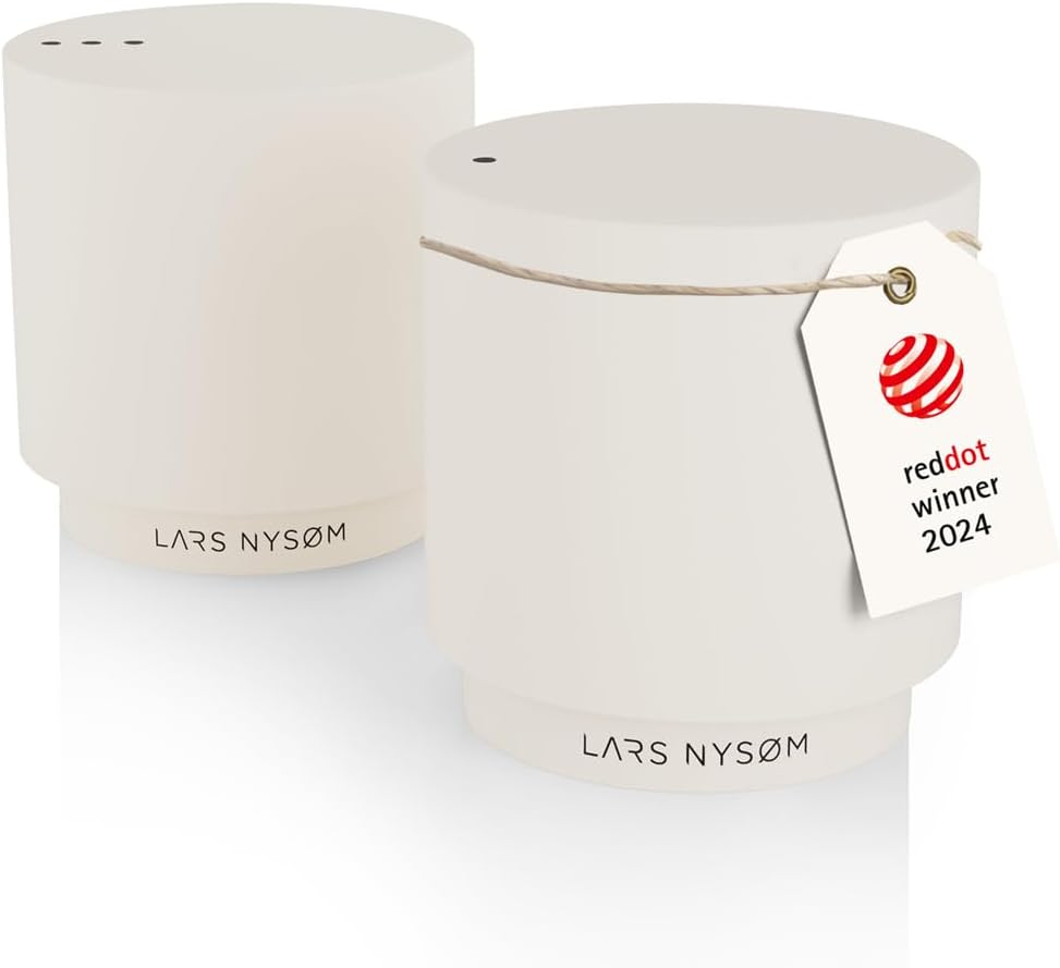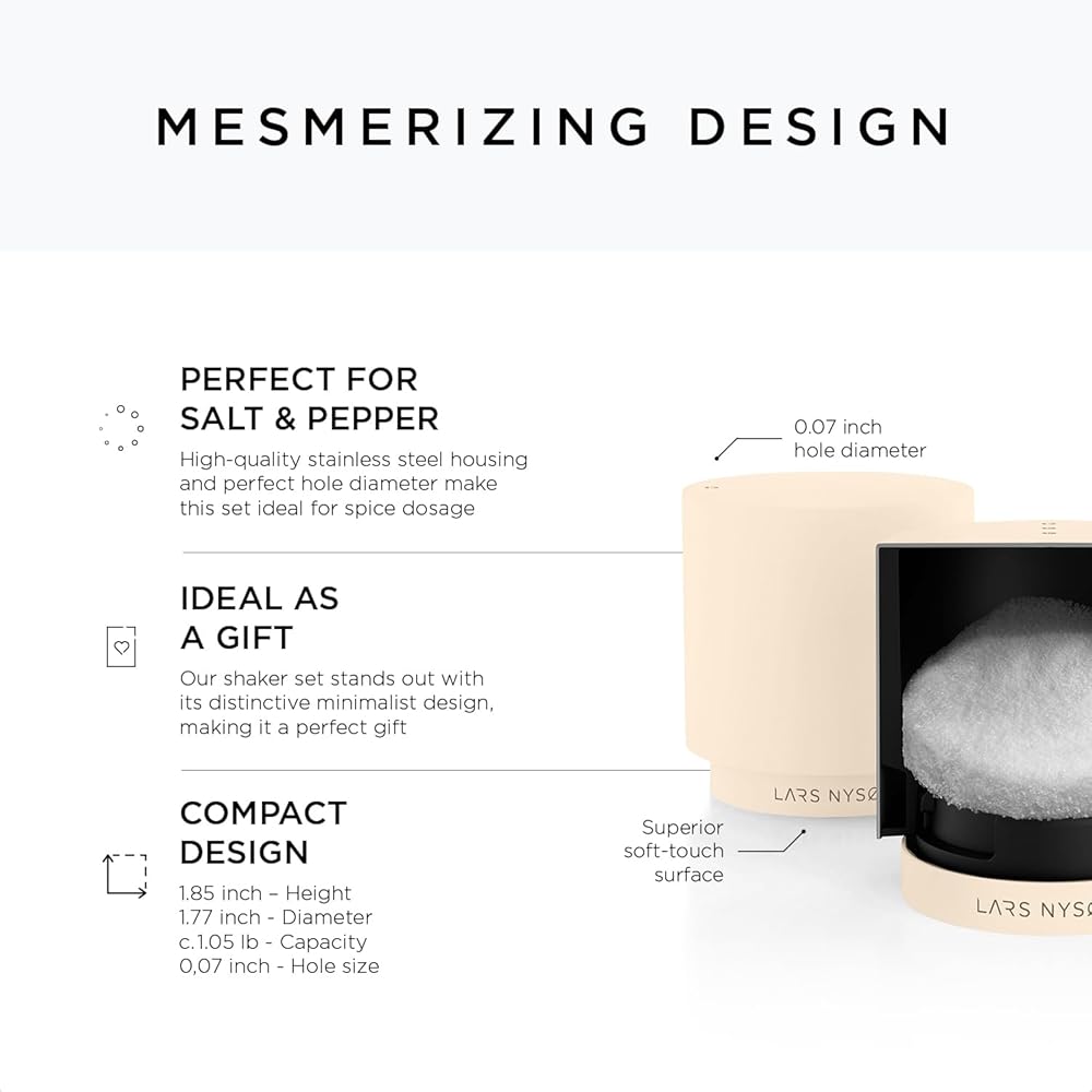 LARS NYSØM Mini Salt and Pepper Shakers Set | Stainless Steel Salt and Pepper Shakers with Modern Minimalist Design, Easy Refill, Small Size (Almond Beige)