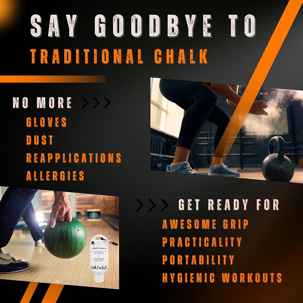 • Ultimate Grip Enhancement: Liquid Chalk offers unparalleled grip enhancement, giving you an unbeatable advantage during intense sports activities. Its advanced formula instantly dries to form a long-lasting, non-sticky, and moisture-absorbing layer on your hands, providing superior grip and control over equipment, weights, and surfaces. Enhance your fitness journey with a range of complementary products. From bowling balls and racks to weight and workout.