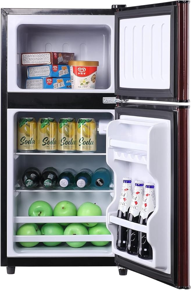 Large Capacity: The mini fridge have refrigerator and freezer areas, which can keep food in a fresh condition separately. The compact design making it suitable for dormitories, offices, bedrooms and apartments.