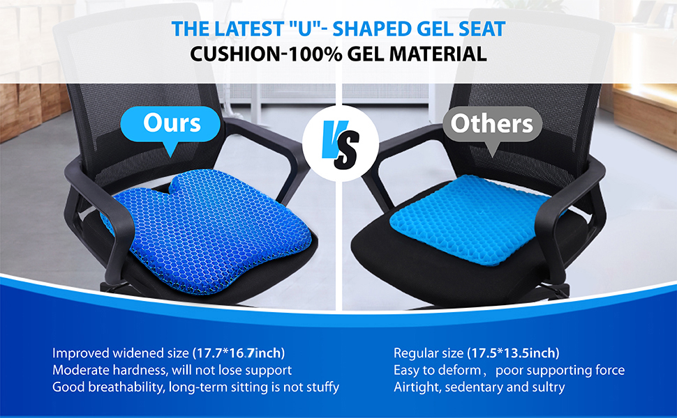 <b>UPGRADED MATERIAL AND STRUCTURE, MORE COMFORTABLE</ b> - Based on years of research on the cushion market, Rongbaor has developed this new U-shaped all-gel cushion. Aiming at the problems of hot, inconvenient cleaning, and aging of the full memory foam cushion, our special honeycomb structure is more breathable and comfortable. Aiming at the problem that the square all-gel cushion is too small and does not fit the hips, our cushion has a larger area and is more ergonomic.