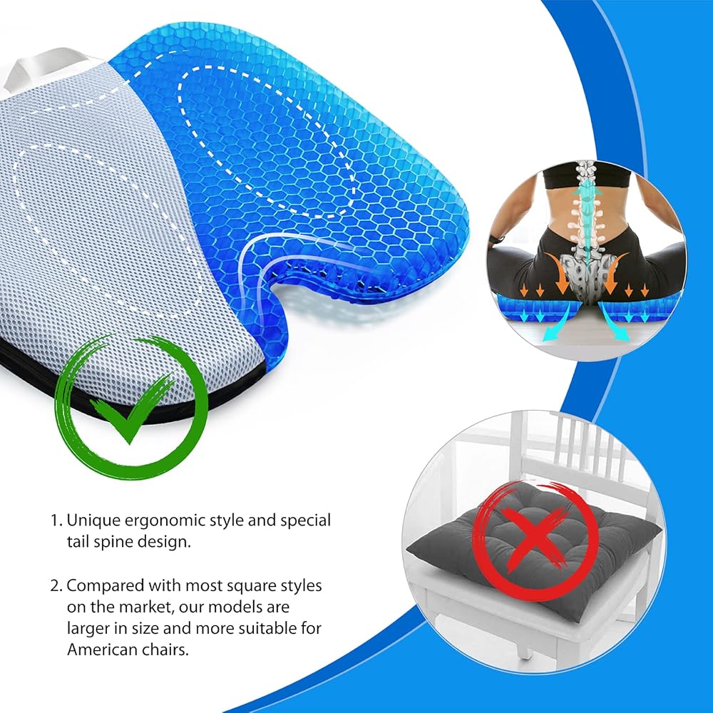 Full Gel Coccyx Seat Cushion Egg Gel Cushions Office Chair Cushion Car Seat Cushion for Back Sciatica Hip Tailbone Pain - Butt Pillow Chair Pad for Wheelchair Desk Pain Relief Long Trips Blue