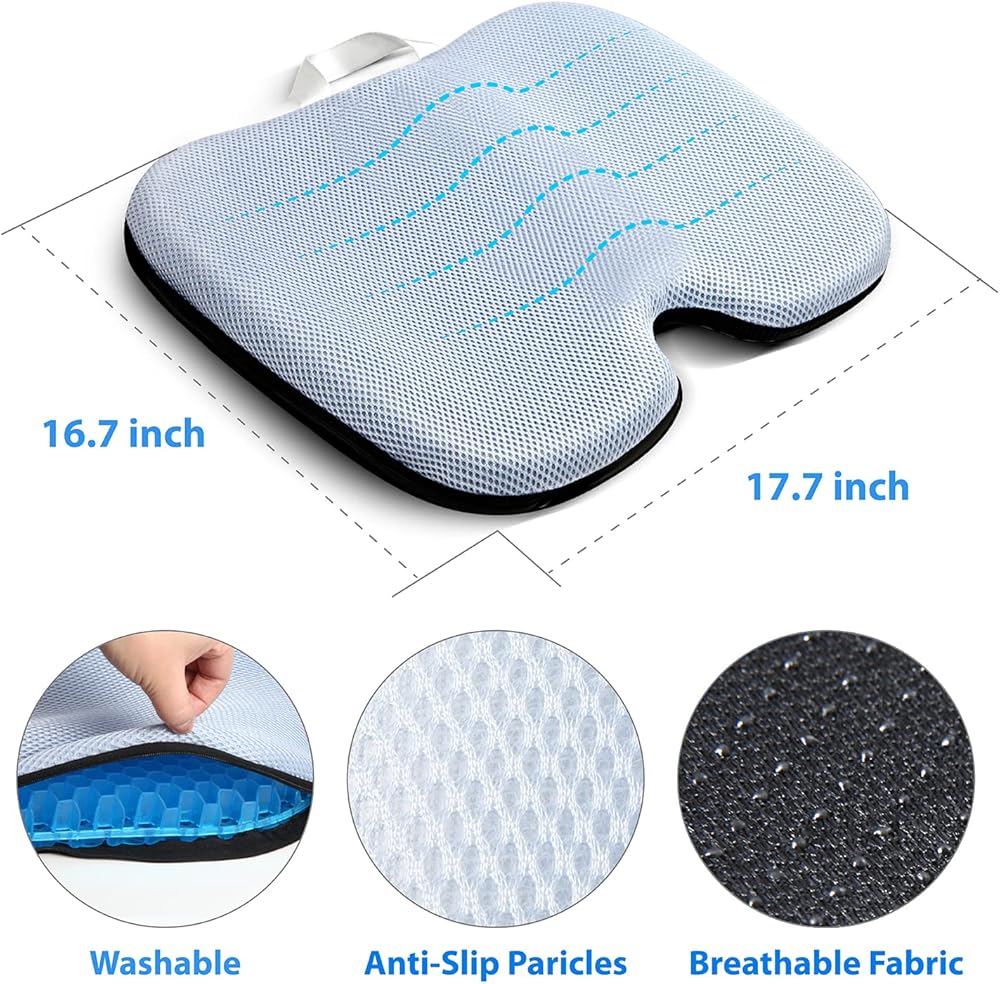 <b>OVERSIZED & EXCELLENT CUSHIONING & EGG TEST</ b> - Its characteristic is that the width has been upgraded from the common 14 inches to 17.7 inches, to ensure that it can be used comfortably on any type of chair and any body shape. Provide you with sufficient support and maximum comfort. The gel pad has magical cushioning properties, even if you put the egg and sit down, the egg will not break. This is the result of a real test. If you are interested, you can also experience it with your family.