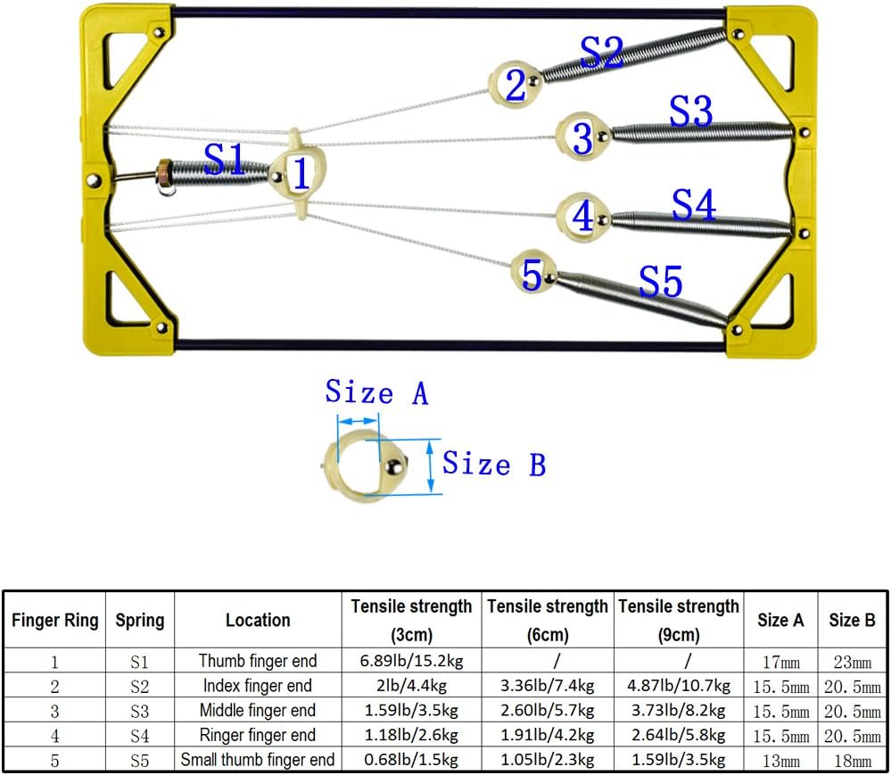 Number of rings: 5 Number of Springs: 5 Adjustable tension: 0.68LB to 6.89LB Dimensions: 15.47x 7.68 x 0.7087 inches (39.30 x 19.5 x 1.8cm) Net weight: 0.88lb (400g)