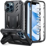 FNTCASE for iPhone 12 Pro-Max Case: with [Built-in Screen Protector & Kickstand] [Military-Grade Drop Protection] Heavy Duty Protective Full Body Shockproof TPU Phone Cover - 6.7 Inch Black