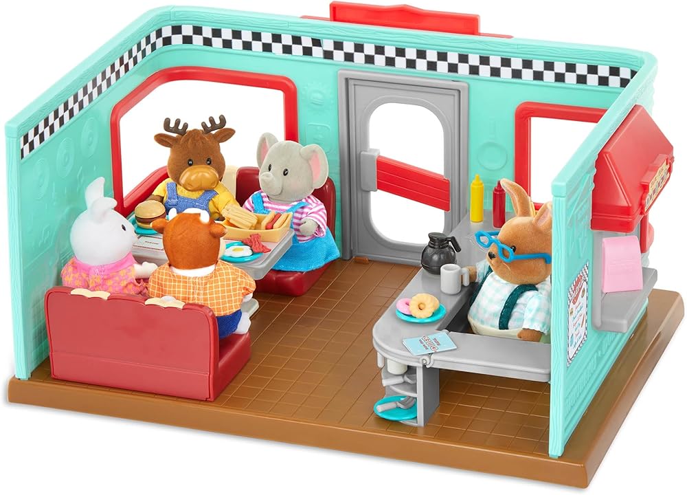 THE PERFECT PLAYSET: Head to the Li'l Nibbles Drive Thru Diner for some comfort food and good company. Enjoy a cup of coffee with your favorite pals or enjoy a delicious burger and fries. This playset is the perfect addition to your Honeysuckle Hallow community with its stackable design and bright colors makes it perfect for inspiring hours of storytelling, all you need is a bit of imagination! Figures sold separately.