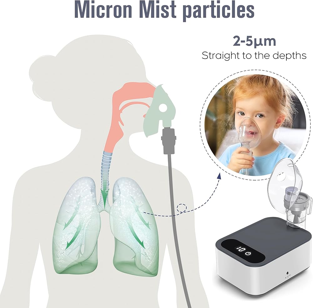 Small and Portable: The latest desktop compressor nebulizer adopts the lightest shell material, which changes the previous bulky features. It weighs only 1.32Lb and is only the size of a palm. It is small and light without reducing the mist output rate of the nebulizer.