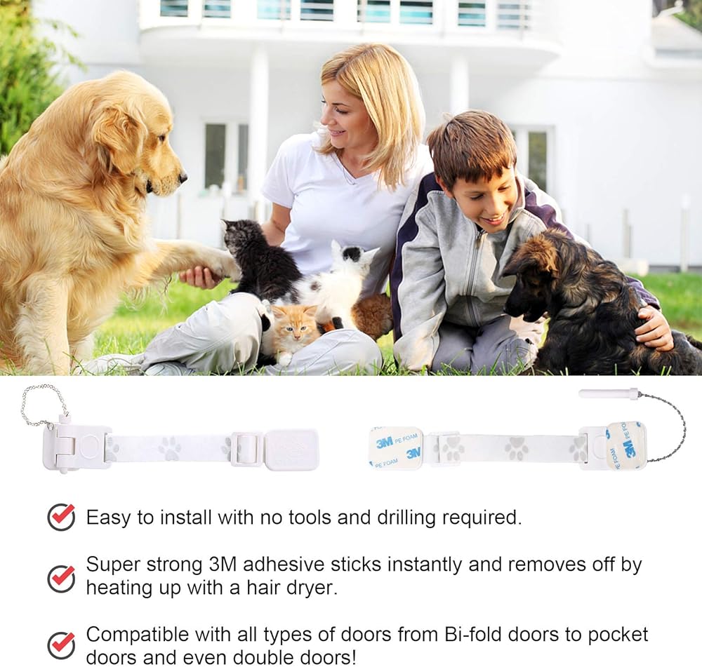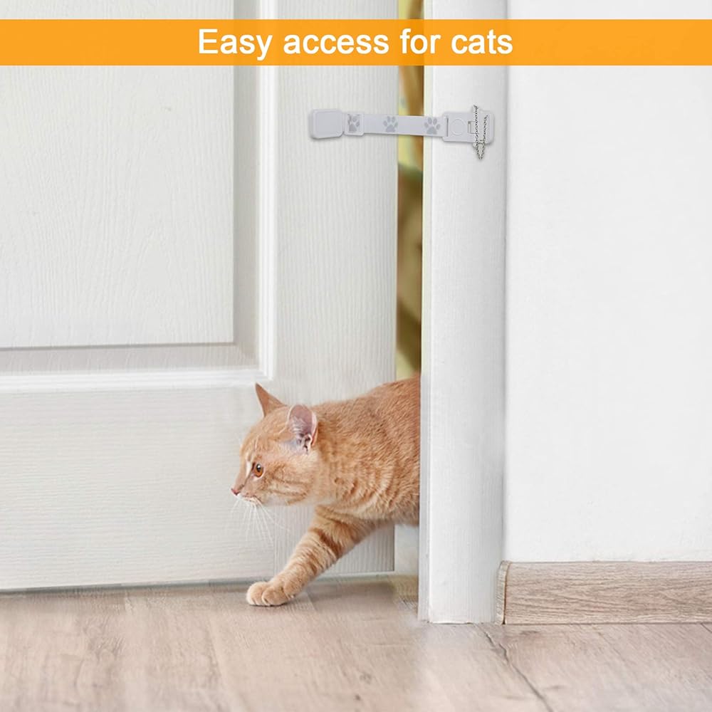 Adjustable Door Strap and Latch. Cat Door for Interior Door. Dog Proof Litter Box. Holds Door Open for Cats and Keeps Dogs Out of Cat Feeder. No Need for Pet Gates. Dog Door Cat Gate for Pet