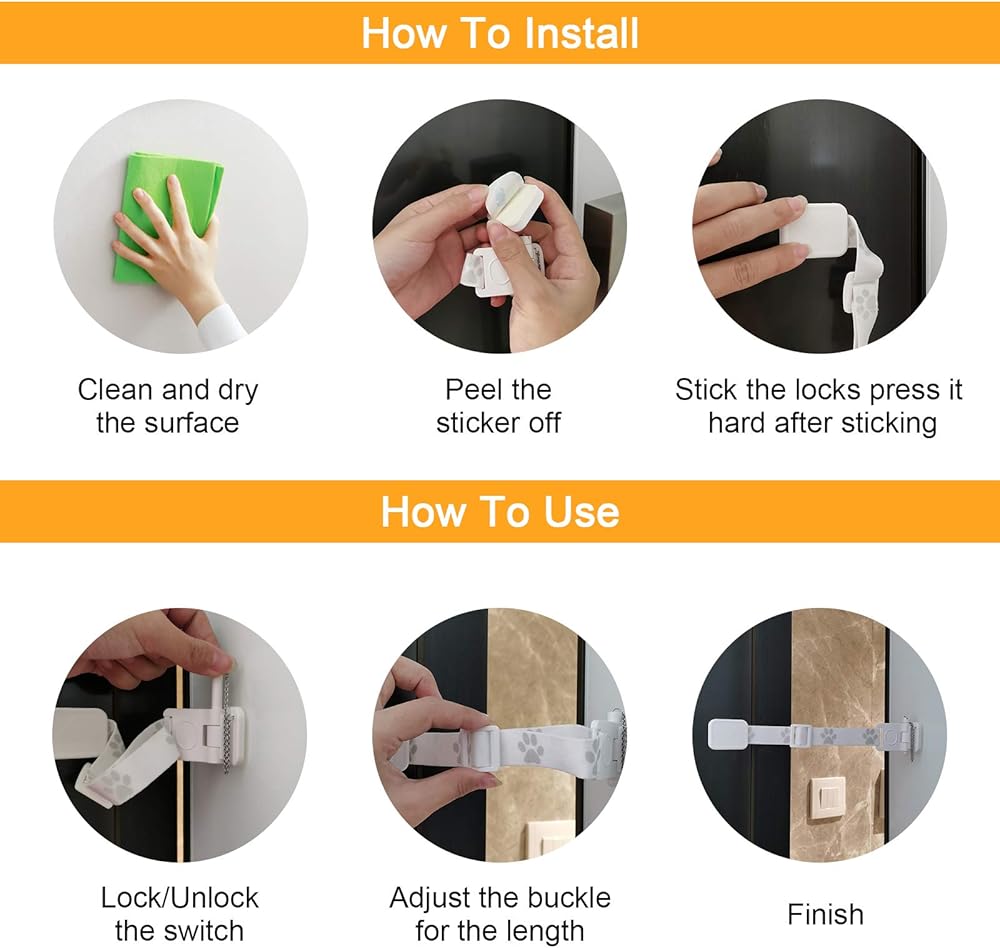 Easy to Install and Use: Our door strap use strong 3M VHB adhesive and give you 2 Pieces of replacement adhesive for free. Just peel the paper on the adhesive , and stick it to the door and door frame, then adjust to a suitable width to use.