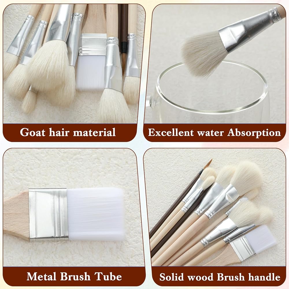 Quality Material: These mop brushes for acrylic painting are made of premium natural goat hair bristles and wood handles, reliable and durable. It is a reliable tool for artists and hobbyists that can be used for a long time