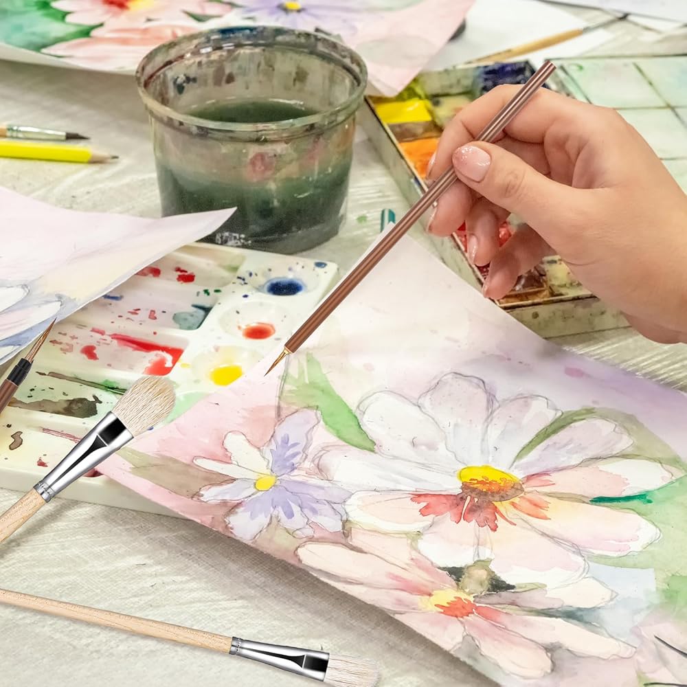 Package Includes: You will receive 7 pieces goat hair paint brushes for acrylic painting, which can meet the needs of gilding techniques, color blending, and softening. It is also enough for you to use, replace and share in daily life