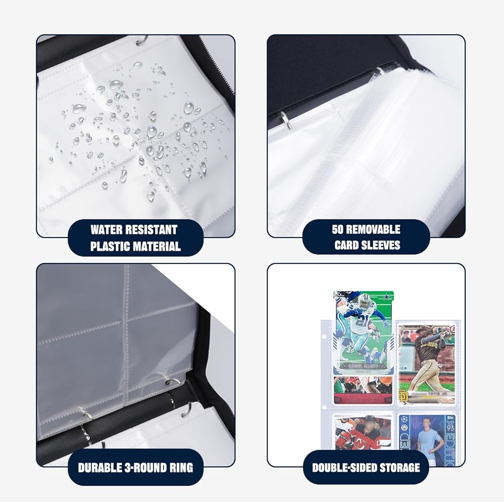 【Large Capacity】Each football card binder has 50 pages, each page has a double-sided card slot,holds up to 900 cards,satisfy your card collecting hobby.