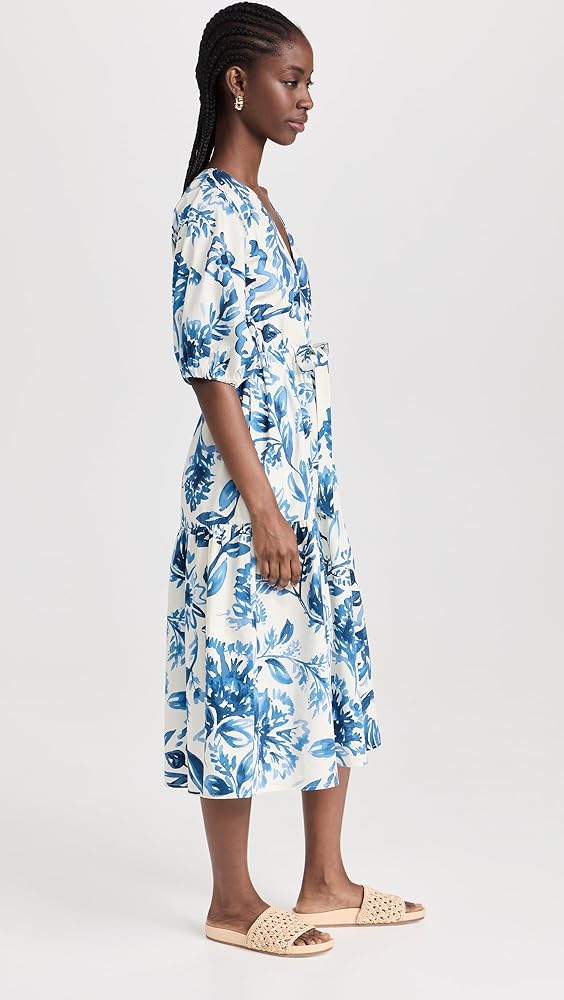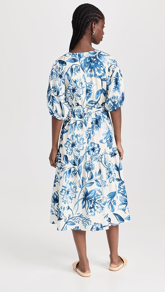 Runs true to size. , Dress has a soft A-line silhouette and midi length. The elasticized waist allows for a more flexible fit. Cotton poplin has a smooth texture and lightweight feel.