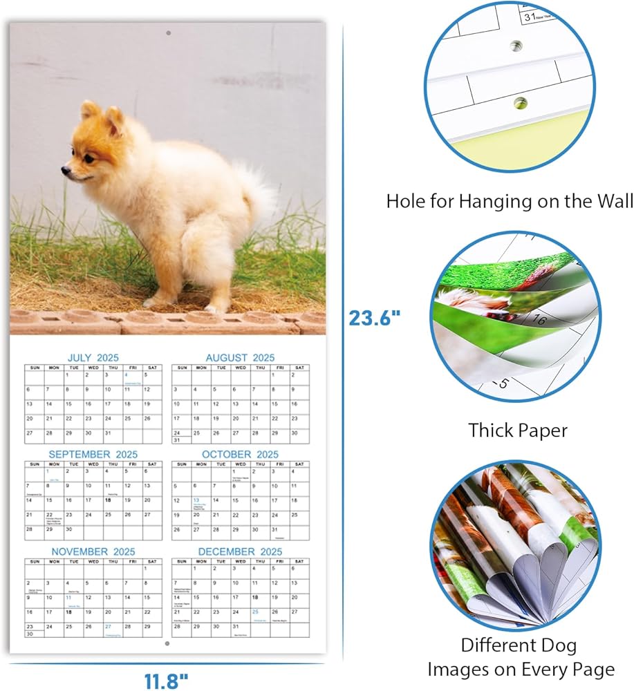 🐶 PERFECT GAG/WHITE ELEGANT GIFTS – 18 different funny crapping dogs are showed on each monthly page, very brighten up your life. A funny Gag gift, White Elegant gift, Funny gift for yourself, friends and family, sharing your happy time with them. Our interesting 2024-2025 wall calendar can track your import dates, greatly boost productivity, and make life happier and organized.